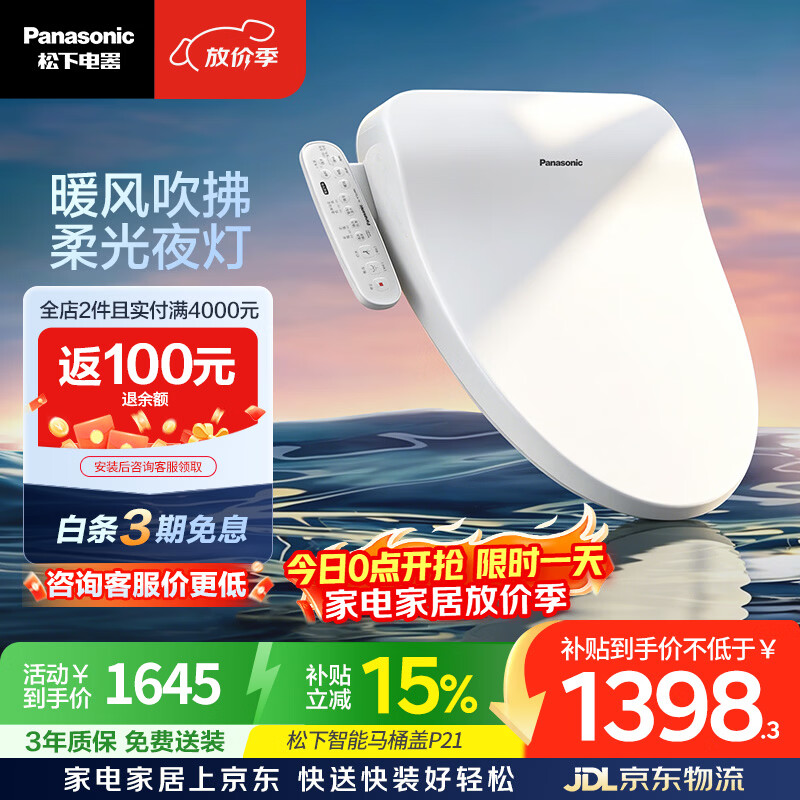 自营松下(Panasonic)智能便盖即热智能温控烘干夜灯款P21