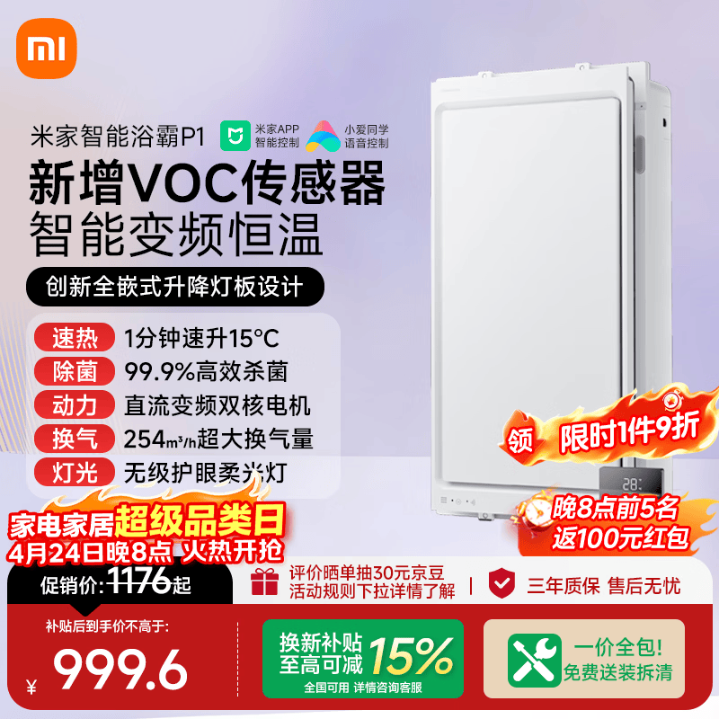 自营米家【一价全包】智能浴霸全嵌变频恒温系列暖风智能除菌一体P1