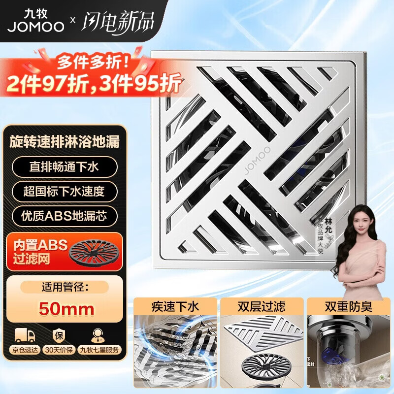 自营九牧(JOMOO)加厚大排量防臭地漏浴室卫生间淋浴干区湿区通用地漏92557-1B-1