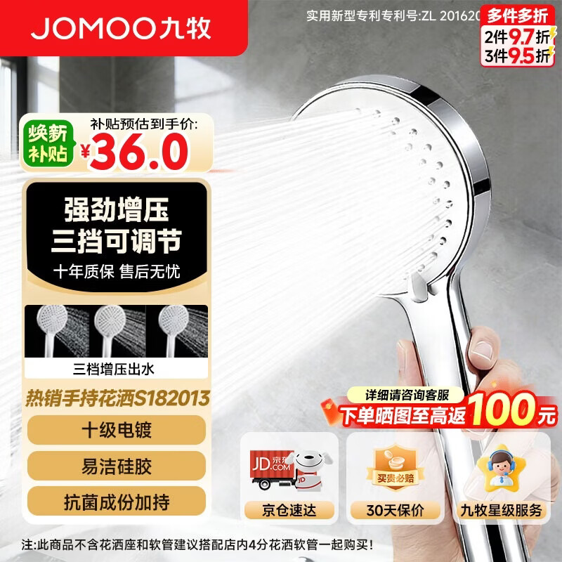 自营九牧(JOMOO)花洒喷头浴室增压出水硅胶除垢手持花洒莲蓬头【三功能】S182013