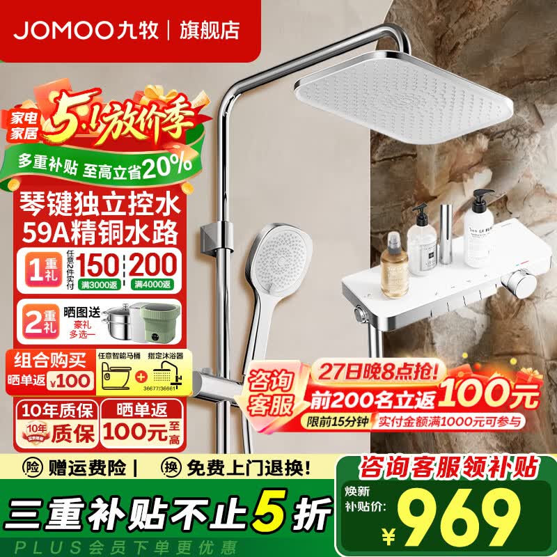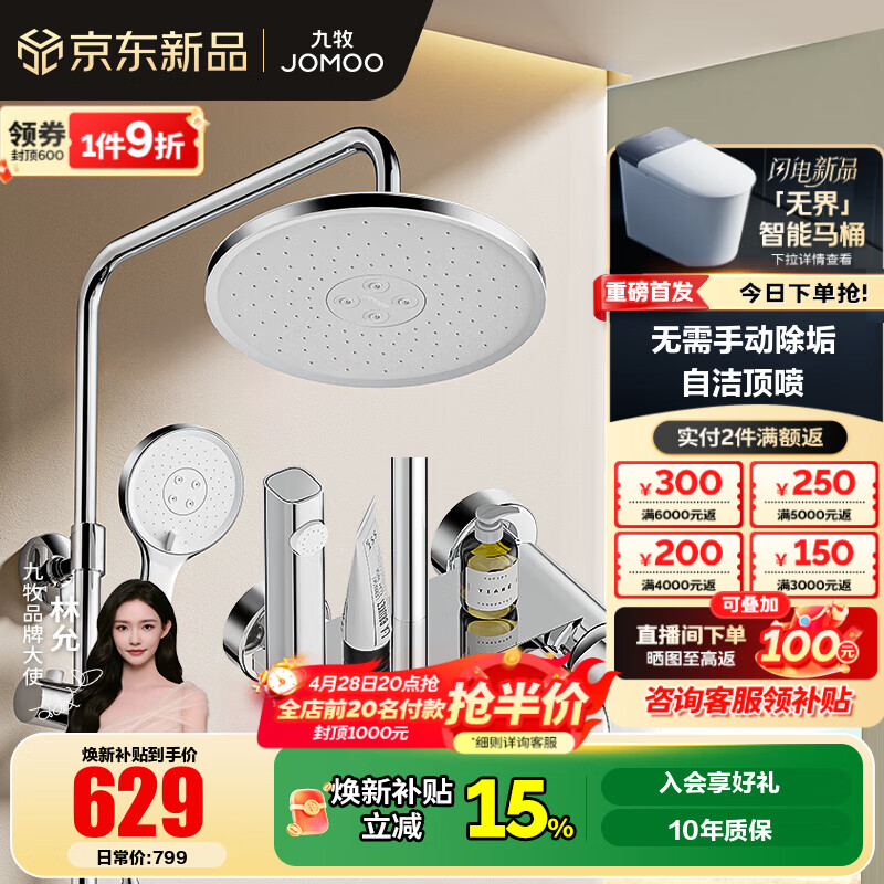 旗舰店九牧(JOMOO)淋浴花洒套装喷头防爆龙头升降淋浴器花洒全套36647 【自洁顶喷】经典银