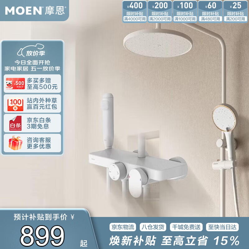 自营摩恩(MOEN)(MOEN)淋浴花洒套装置物台自动除垢大顶喷带喷枪奶白全套31244