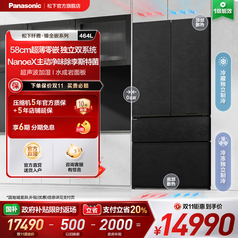 旗舰店容声526升双净双系统法式多门四开门电冰箱家用一级能效风冷无霜节能大容量 BCD-526WD1MPA灰国家补贴