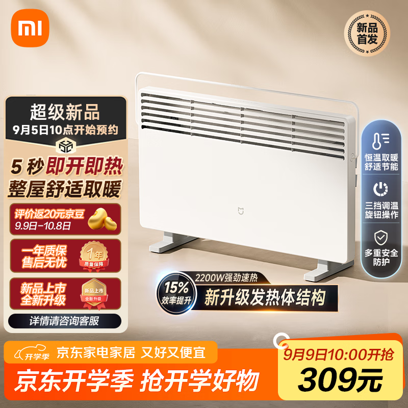 自营米家小米取暖器京东自营暖风机小太阳取暖器立式速热恒温电暖器家用小型暖风机立式电暖器LSNFJ03ZM