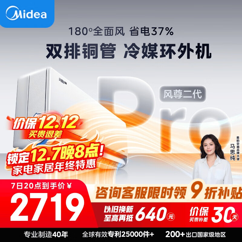 百亿补贴美的全面风风尊二代pro空调1.5匹一级变频家用官方正品冷暖挂机