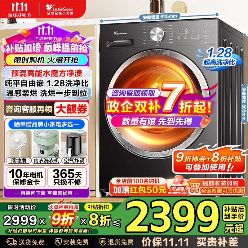 旗舰店海尔(Haier)【云溪4.0】77E滚筒洗衣机全自动直驱精华洗2.0超薄平嵌羊毛绿标认证一级能 家电补贴 78E单洗11公斤直驱精华洗2.0+蓝盾双效除菌