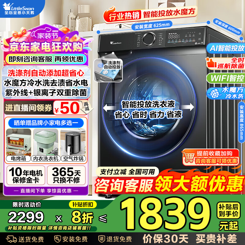 自营米家小米洗衣机全自动双区洗滚筒10公斤内衣儿童洗一级能效国家补贴XQG103MJ111