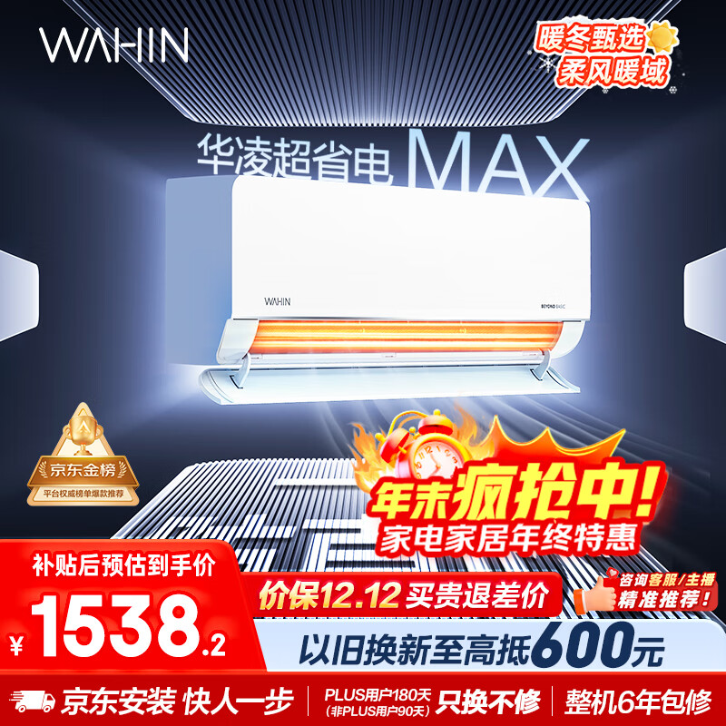 华凌空调【国家补贴20%】超省电升级版 大1.5匹 新一级能效 变频冷暖大风量 卧室空调挂机 1.5匹 一级能效 35A1III-P