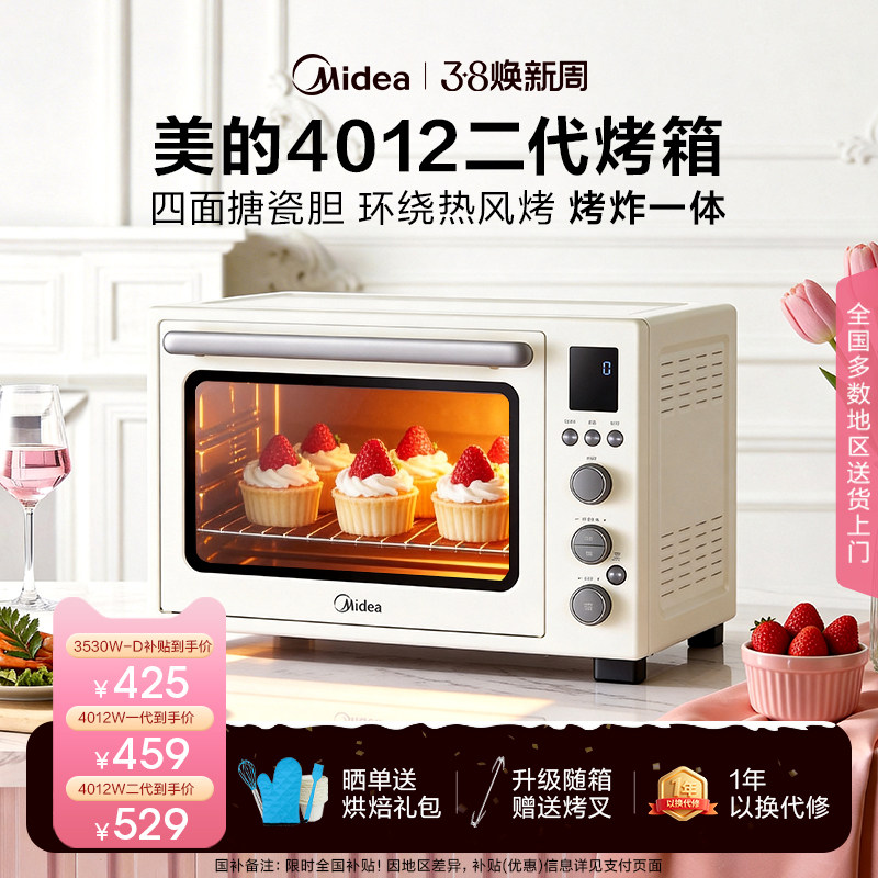 旗舰店[补贴15%]美的电烤箱4012风炉烤箱家用烘焙空气炸锅烤炸一体机40L