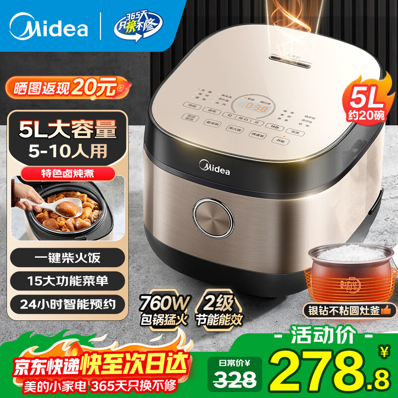 旗舰店美的(Midea)5升电饭煲电饭锅家用4-5-8-10个人大容量 二级能效全智能电饭煲特色卤炖球釜柴火饭官方旗舰店年货 【5升大容量】25年节能款 5L