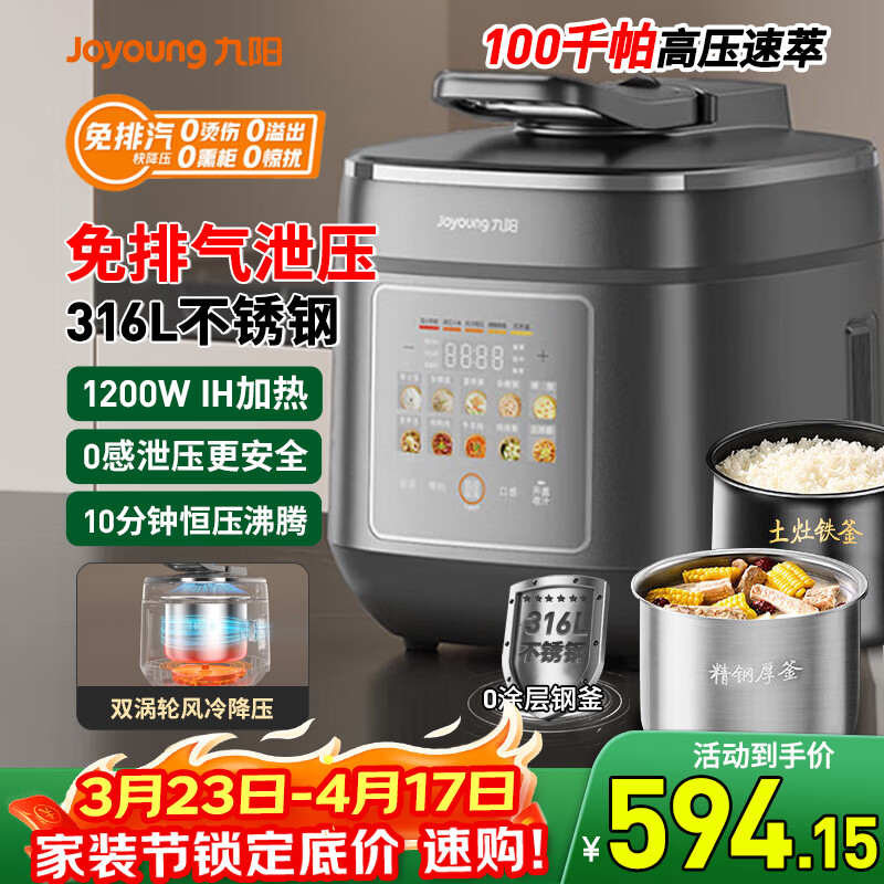 旗舰店九阳(Joyoung)5升智能家用一锅双胆多功能百千帕免排汽电压力锅压力煲0涂层316L内胆IH大火加热煮高压锅Y-50IHZ3 【自动排压】 5L