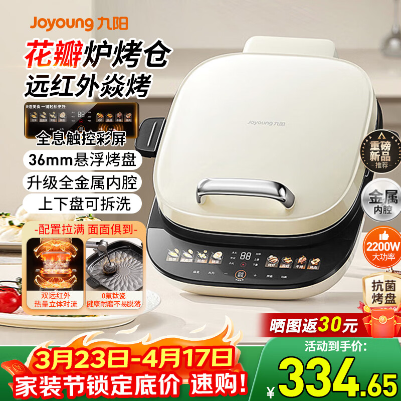 旗舰店九阳(Joyoung)电饼铛加深烤盘0氟钛瓷超耐磨家用煎烤机蒸汽补水大火力上下可拆升降可调方盘烙饼锅三明治早餐机 GK350【国家补贴】