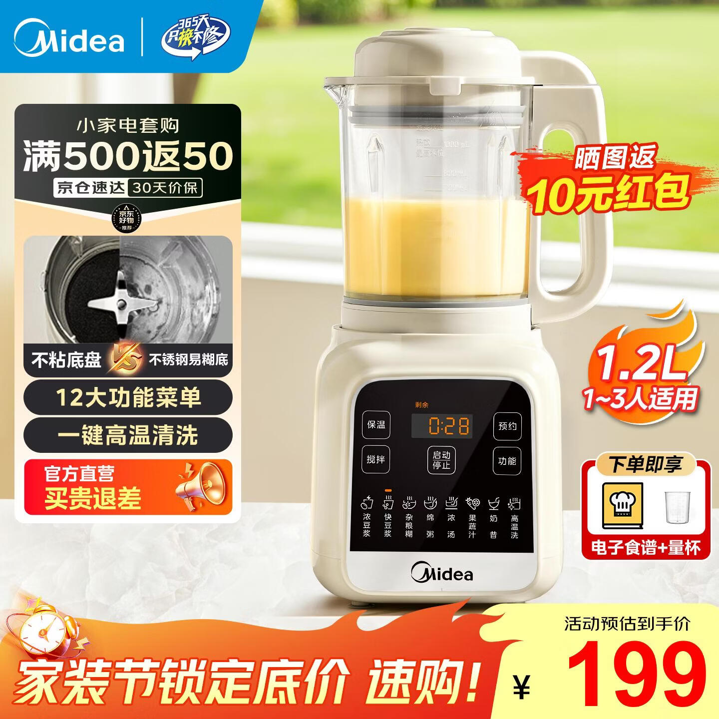 旗舰店美的(Midea)破壁机家用小型1-2人 1.2L容量多功能免滤豆浆机 五谷杂粮米糊料理机辅食机榨汁机 【双豆浆模式】MJ-PB50G2-001