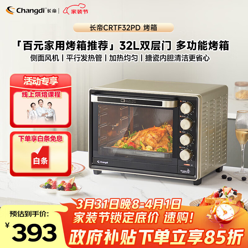 自营长帝(changdi)国家补贴家用烤箱多功能电烤箱 32升大容量上下管独立控温多面搪瓷内胆机械式旋钮白色节日礼物