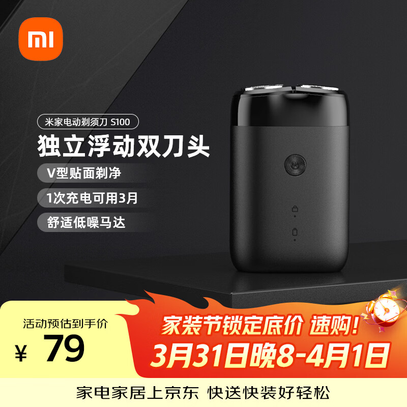 自营米家电动剃须刀S100【便携出游】小米刮胡刀旋转双刀头90分钟续航Type-C快充 生日礼物