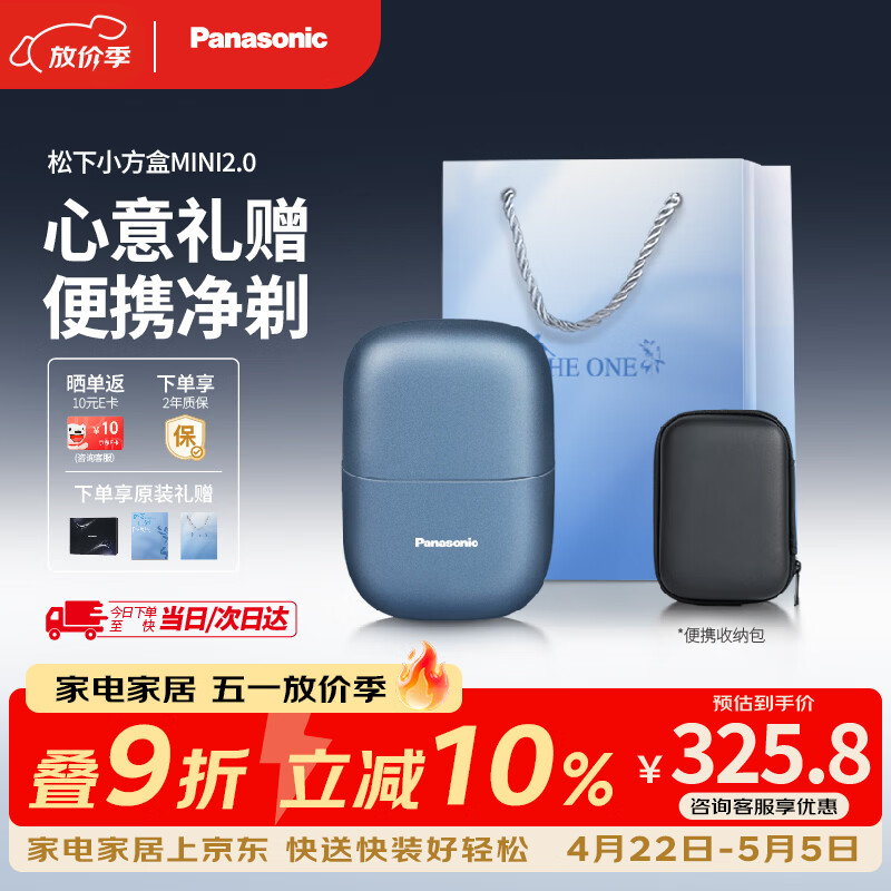 自营松下(Panasonic)剃须刀电动刮胡刀小方盒mini2.0便携款进口刀头往复式男生生日礼物礼盒男士送男朋友父亲cm21蓝