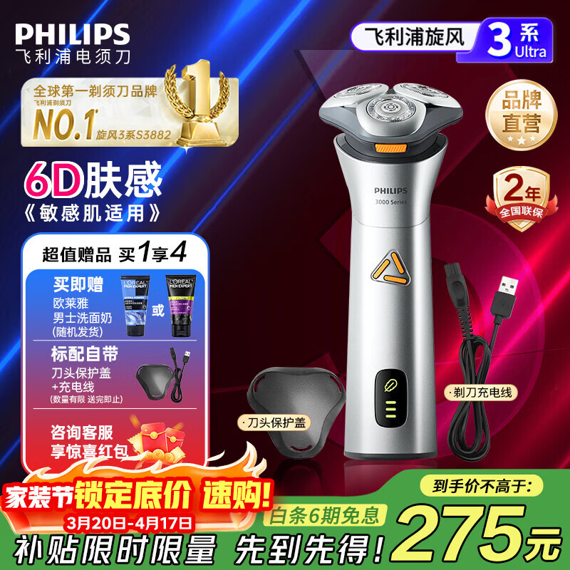 百亿补贴飞利浦(PHILIPS)电动剃须刀电动男士2025新款旋风3刮胡刀飞利浦剃须刀官方旗舰正品新年送老公年货生日礼物实用 【爆款礼套】旋风3系PRO 3882/02