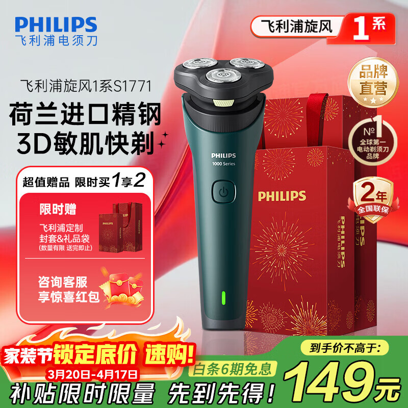 旗舰店飞利浦(PHILIPS)剃须刀电动剃须刀飞利浦原装进口刮胡刀飞利浦电动剃须刀胡须刀剃胡刀官方旗舰店送男友生日礼物 【热销爆款】旋风1系 S1771/02