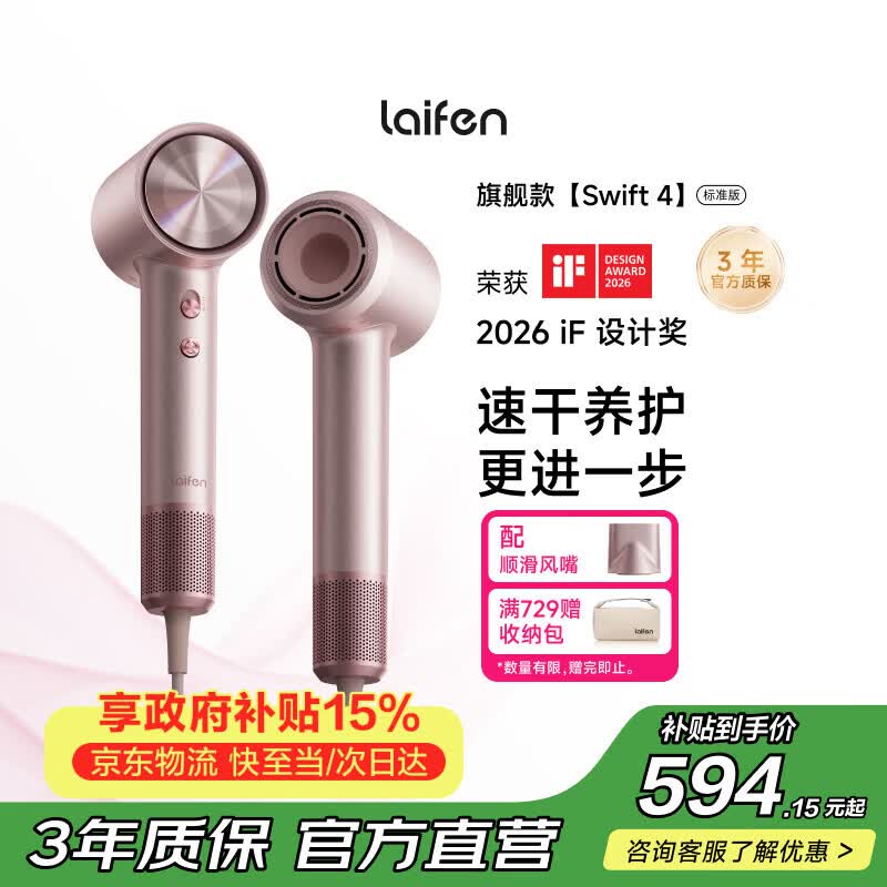 自营徕芬Laifen高速吹风机Swift 4 (标准版) 速干家用电吹风 负离子护发风筒 生日礼物 粉色