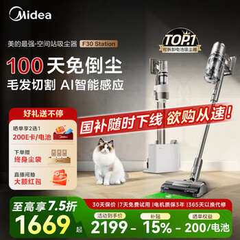 自营美的(Midea)吸尘器家用无线手持ai自集尘空间站除螨绿光宠物【100天不倒尘 毛发防缠】F30station【国家补贴】