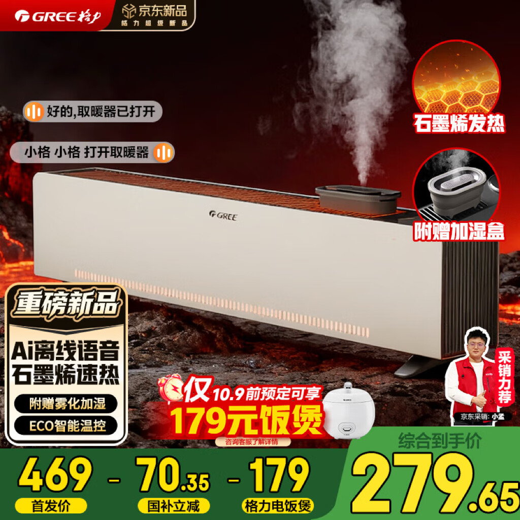 自营格力(GREE)【暖岁系列】AI语音石墨烯踢脚线浴室取暖器加湿电暖器移动地暖节能全屋取暖器 NJI-X7022BV-M