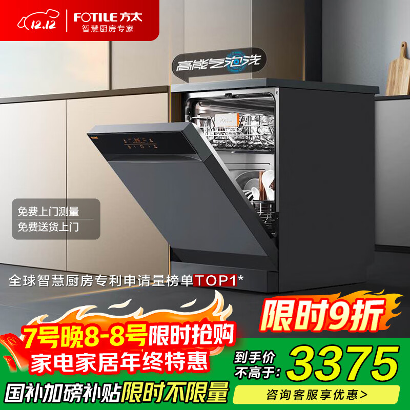 自营方太洗碗机嵌入式万家用 高能向气泡洗 12套大容量 灶下洗一级水效 30min超快洗 NJ03S【国家补贴】