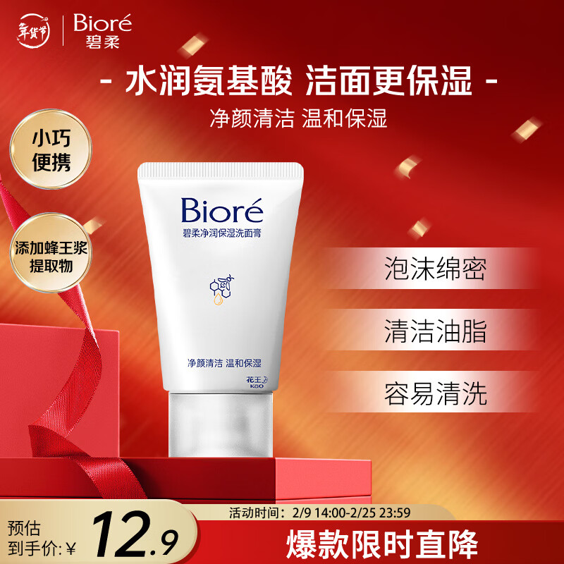 自营碧柔(Biore)碧柔净润保湿洗面膏 30g 氨基酸洗面奶 温和保湿清洁护肤自营
