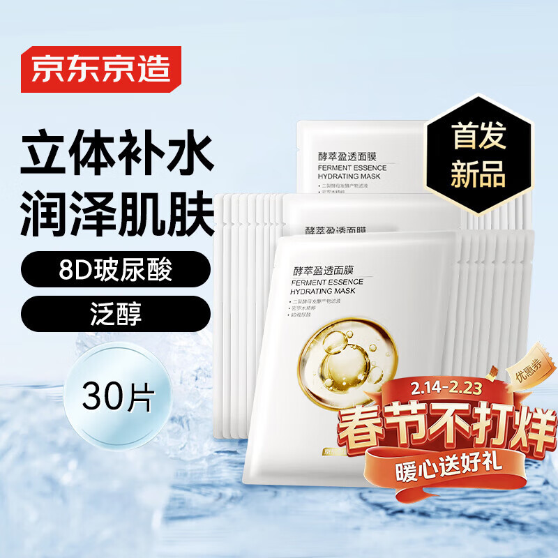 自营京东京造酵萃盈透面膜30片玻尿酸深度补水保湿敏感肌男女七夕情人节礼物