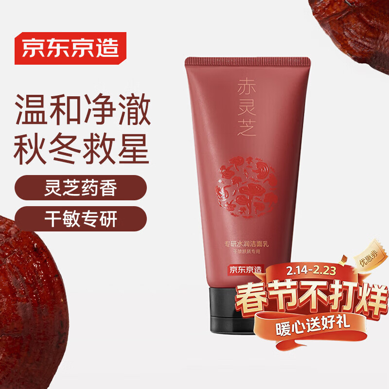 自营京东京造专研植萃水润洁面乳100g赤灵芝氨基酸洗面奶男女士护肤品敏肌