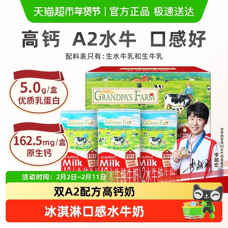 爷爷的农场A2水牛奶儿童饮品高钙纯牛奶迷你牛奶成长牛奶宝宝纯奶