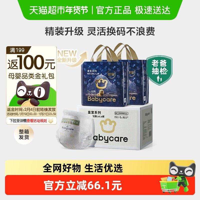 【精装升级】babycare皇室狮子王国拉拉裤婴儿尿不湿箱装L-XXXL