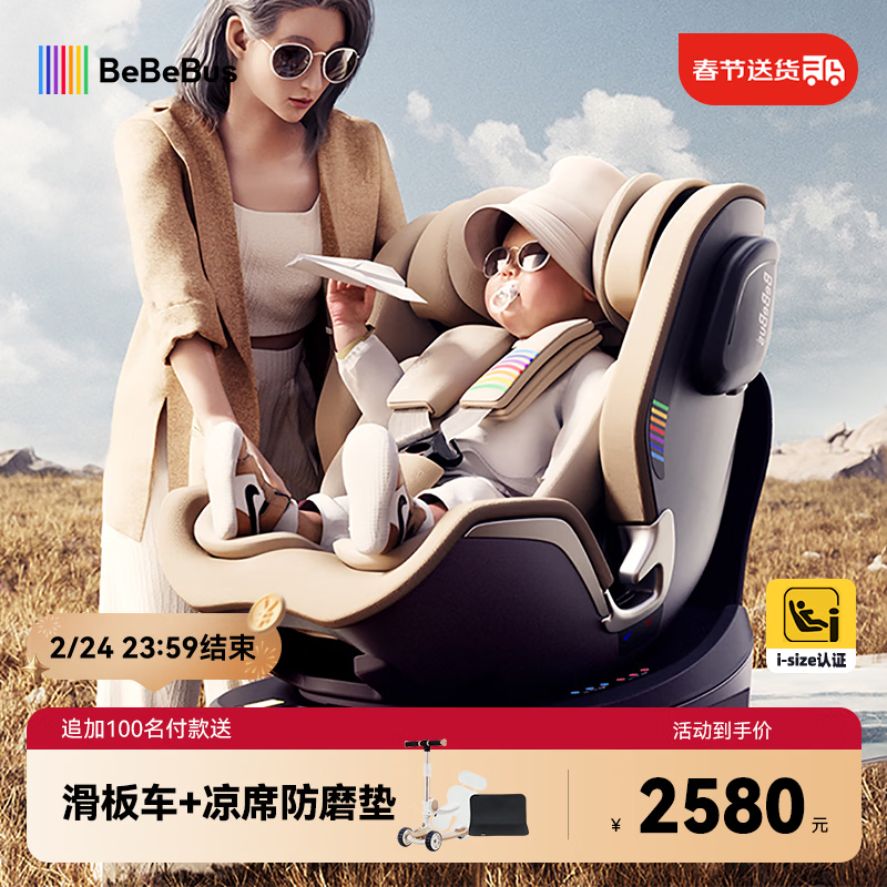 自营bebebus儿童安全座椅领航家汽车用0-8岁婴儿宝宝车载360度旋转 香槟金Pro