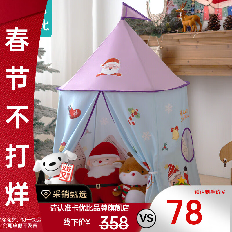 旗舰店卡优比儿童帐篷游戏屋男孩女孩秘密基地幼儿园圣诞节礼物宝宝游戏城堡 梦幻圣诞屋(紫)+收纳包