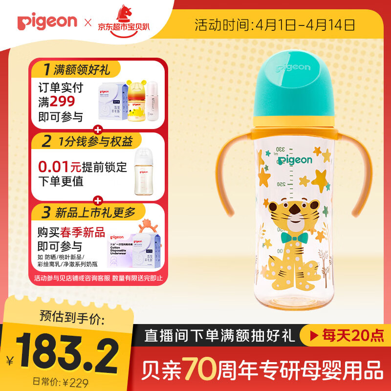Pigeon贝亲婴儿宽口径彩绘PPSU奶瓶新生儿双把手奶瓶3-9个月+