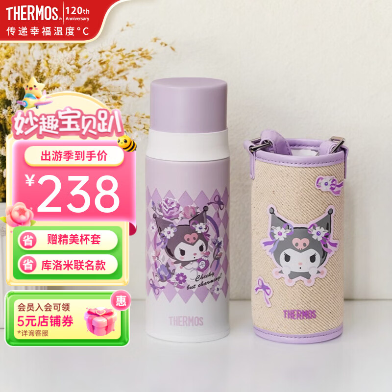 旗舰店膳魔师儿童保温杯316L不锈钢直饮杯学生水杯喝水杯子礼盒送礼礼物 FFM 【库洛米】紫色直饮杯370ml