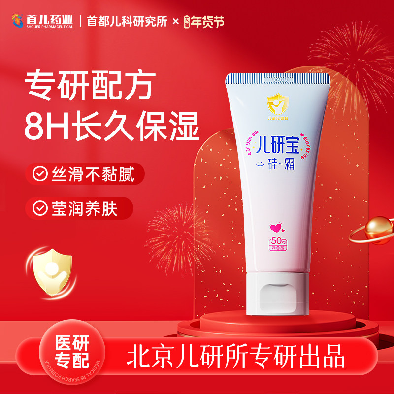 旗舰店儿研宝官方硅霜肤乐霜三件套婴幼儿童面霜身体润肤乳保湿退红修护