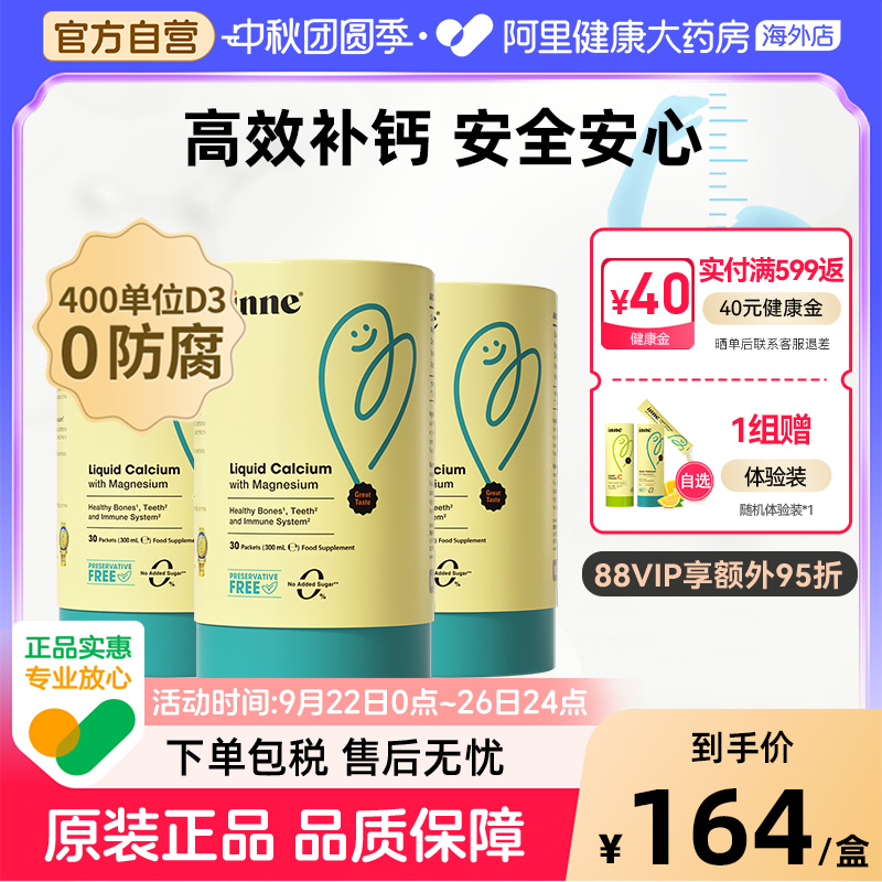 【儿童补钙】inne因你小金条钙镁锌0防腐液体钙婴幼儿童补钙*2罐