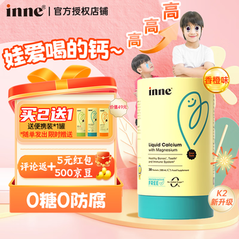 自营Inne因你小金条钙镁锌儿童液体钙d3婴儿30条*2罐香橙味