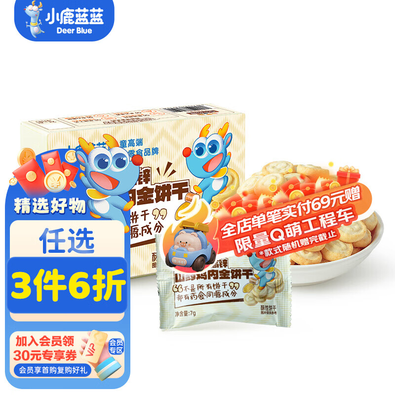 旗舰店小鹿蓝蓝山药鸡内金饼干高钙高铁高锌新西兰进口乳粉海藻糖酥脆饼干 山药鸡内金饼干【1盒】