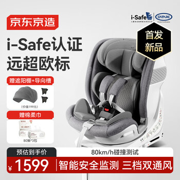 自营京东京造儿童安全座椅0-4-7岁 i-size智能双通风模拟ADAC 星际舱pro星雾灰