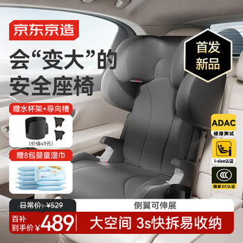 自营京东京造儿童安全座椅3-12岁大童 增高垫 I-size认证成长舱墨岚灰