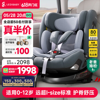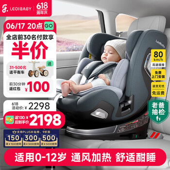 旗舰店ledibaby乐蒂宝贝儿童安全座椅0-4-12岁汽车用婴儿宝宝坐椅车载可坐可躺 太空舱2Pro旗舰版【月影灰】