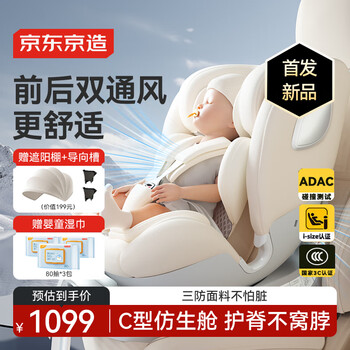 自营京东京造儿童安全座椅0-4-12岁 i-size智能双通风ADAC 商务舱pro奶油白