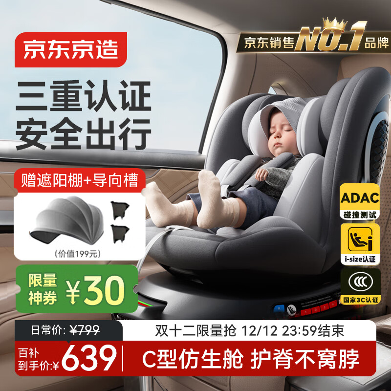 自营京东京造儿童安全座椅汽车0-6-12岁婴儿宝宝 i-Size认证ADAC 安全舱幻影灰