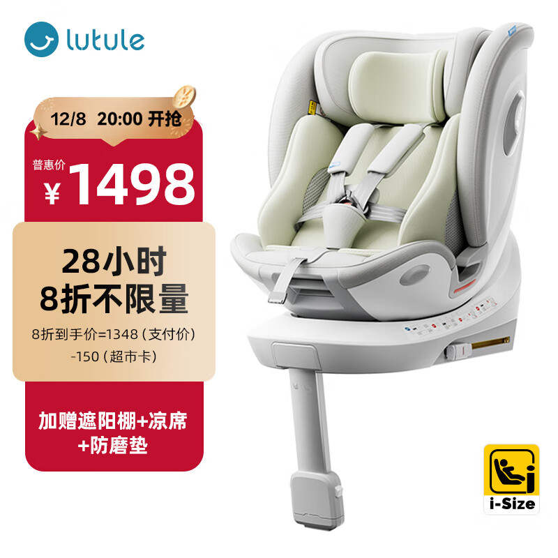 自营路途乐儿童安全座椅0–12岁全龄i-Size认证婴儿360度旋转 途跃pro粽野绿