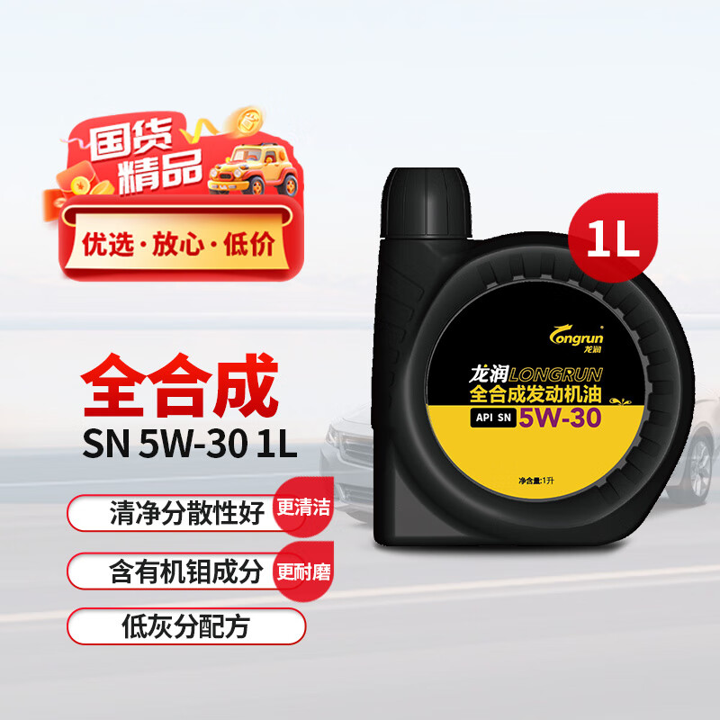 自营龙润润滑油全合成汽机油润滑油 5W-30 SN级 1L 汽车保养