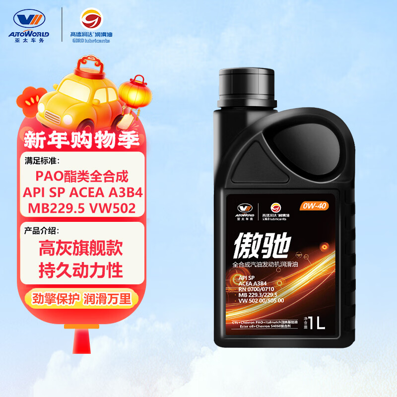 自营高德润达傲驰系列SP级 A3B4 0W-40 PAO酯类高灰分全合成汽机油 1L京东养车