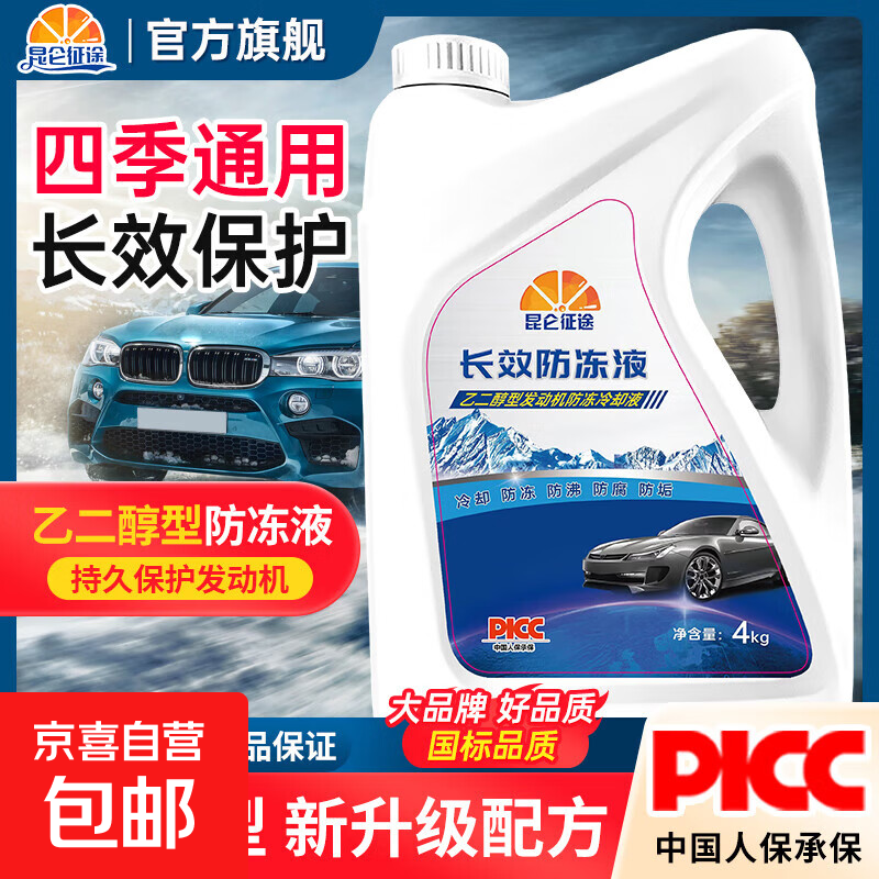 自营昆仑征途昆仑征途防冻液4KG汽车发动机冷却液乙二醇型油性红绿色 4kg 0°C 红色