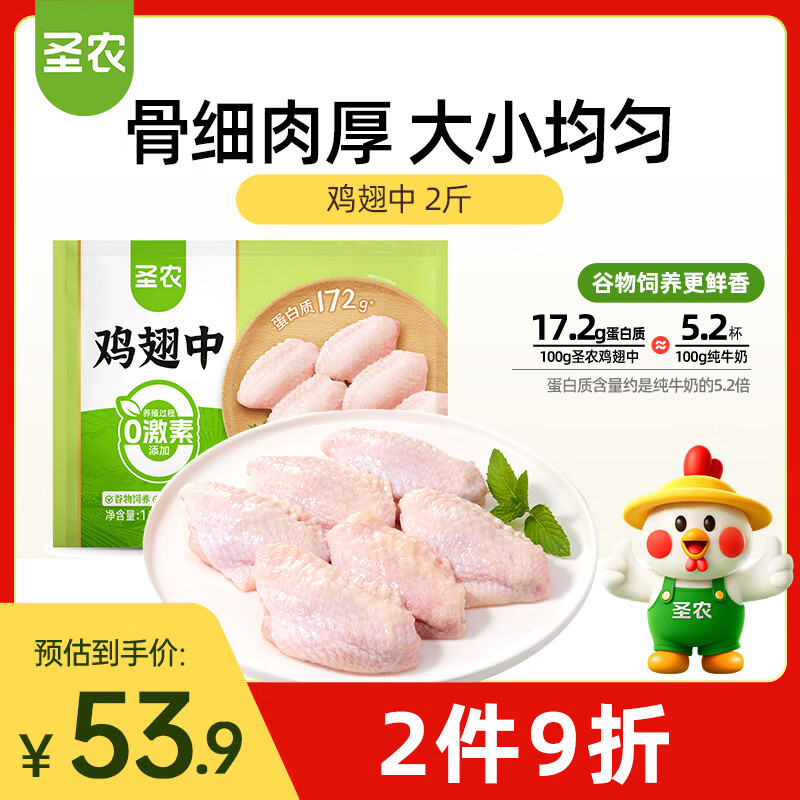 自营圣农鸡翅中净重2斤/袋 可乐鸡翅 大翅中 烧烤鸡翅 盐焗翅中 清真食品