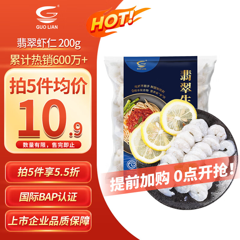 自营GUO LIAN国联 翡翠生虾仁 净重200g独立包装 31-40只 京东虾仁品质年货节